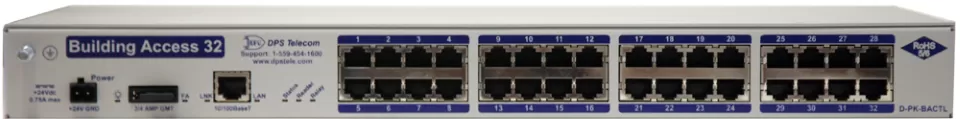 The Building Access 32 interfaces to your door access controller, proxy card readers, and T/Mon Alarm Master. While a variety of NetGuardian RTUs can also handle this function, the Building Access 32 is ideal for high-density scenarios where you have a lot of doors to control and monitor. The Building Access 32 does not require external Entry Control Units (ECUs) to be placed near each door. It communicates directly with your proximity readers. Also, because the Building Access 32 does not include the network alarm monitoring functions of a traditional RTU, it is more cost-effective at sites where you don't have telecom equipment to monitor, such as your main office or storage facilities.