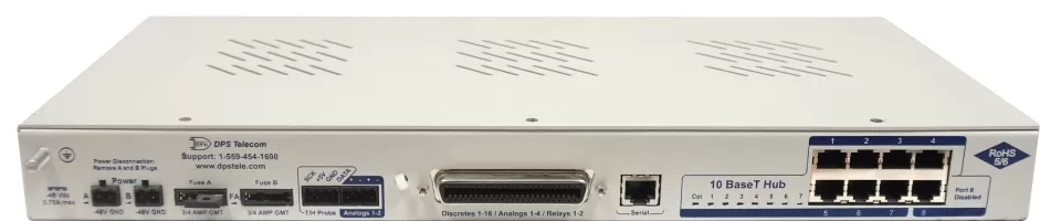 With FrameRelay/T1 support, an integrated 7-port hub, industrial temperature rating, and powerful alarm collection and reporting, the NetGuardian 216T can effectively monitor outdoor enclosures and provide Ethernet to sites without existing LAN.